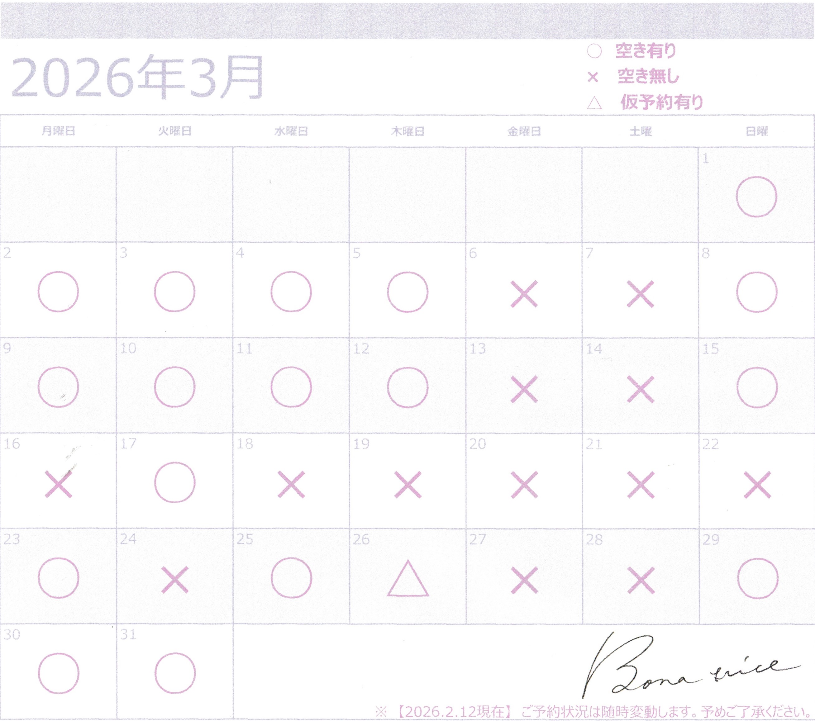 【2026.3】貸切の空き状況☆彡